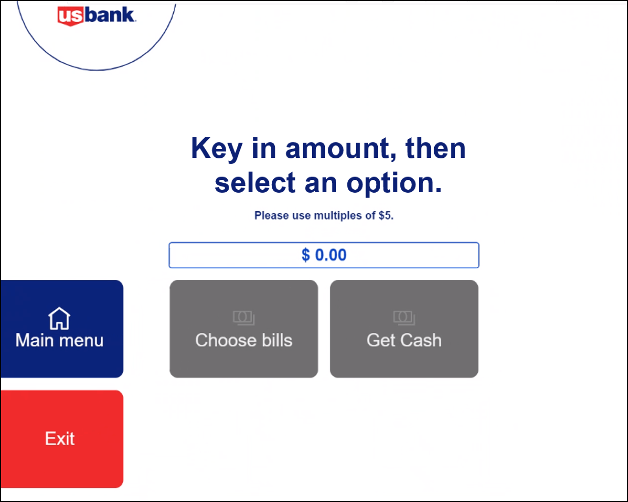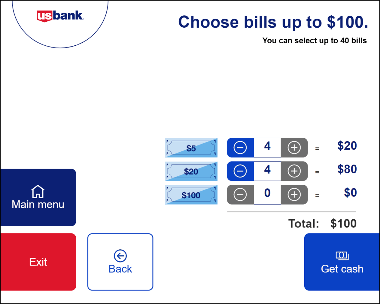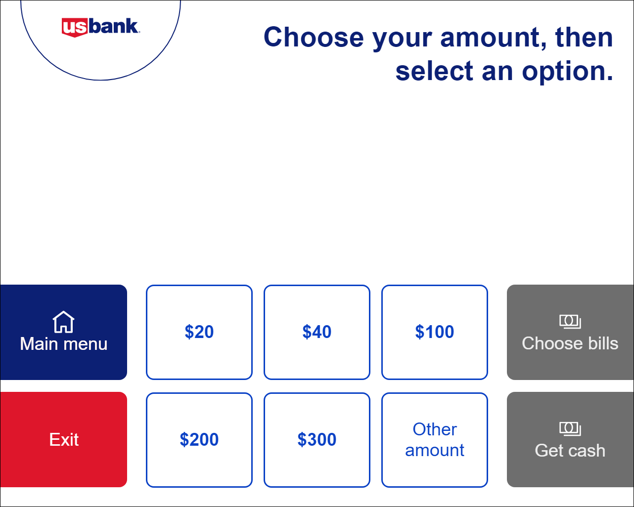 To move forward from “choose your amount,” users took two actions: pick the withdrawal amount, then choose either “Choose bills” or “Get cash.” The options led to unintended results. Some users who wanted a different bill mix picked “Get cash,” not knowing that path wouldn’t let them choose bills at all.