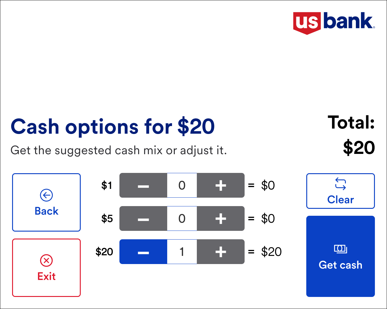 The move was to collapse the two paths. No more “choose bills” vs. “get cash.” One screen with more preset denominations, and the bill-mix step pulled into its own dedicated flow only when the user wanted it.