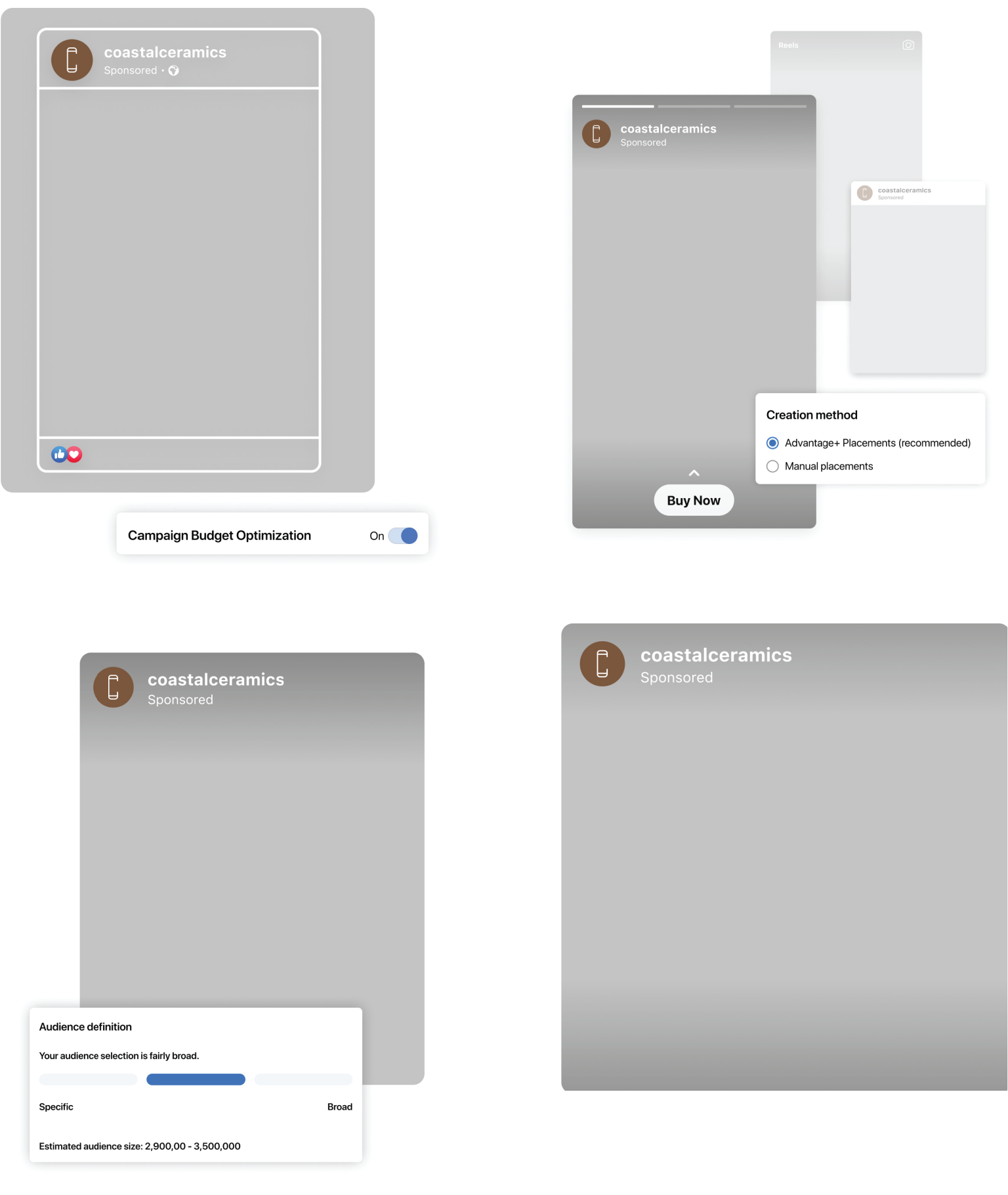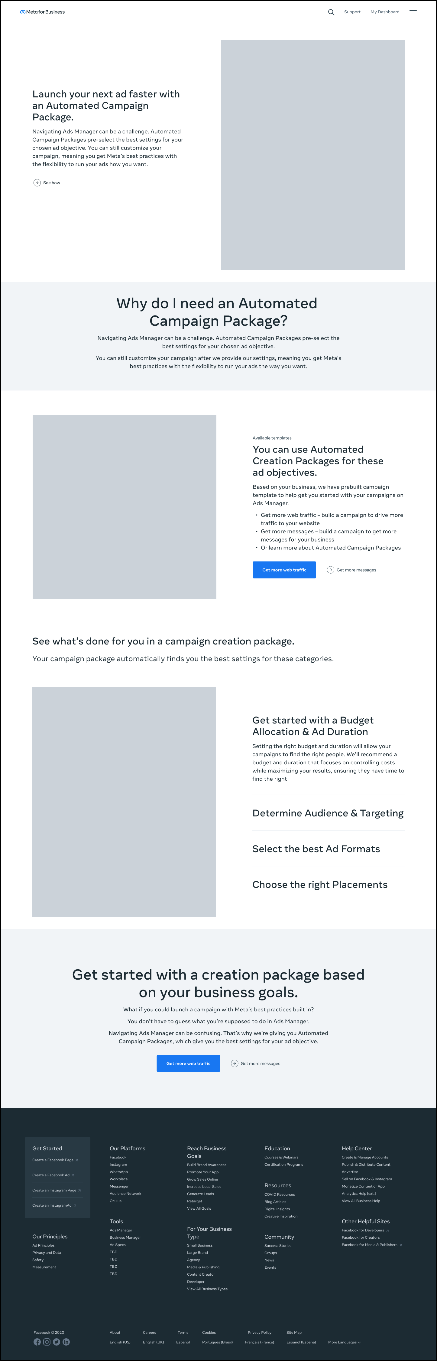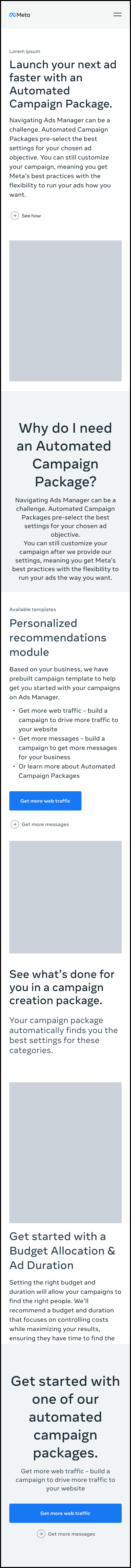 To kickstart the design process, I used Meta for Business’s established design system as a foundation for the page’s wireframes. Adhering to the existing guidelines and components was crucial for a cohesive visual experience.