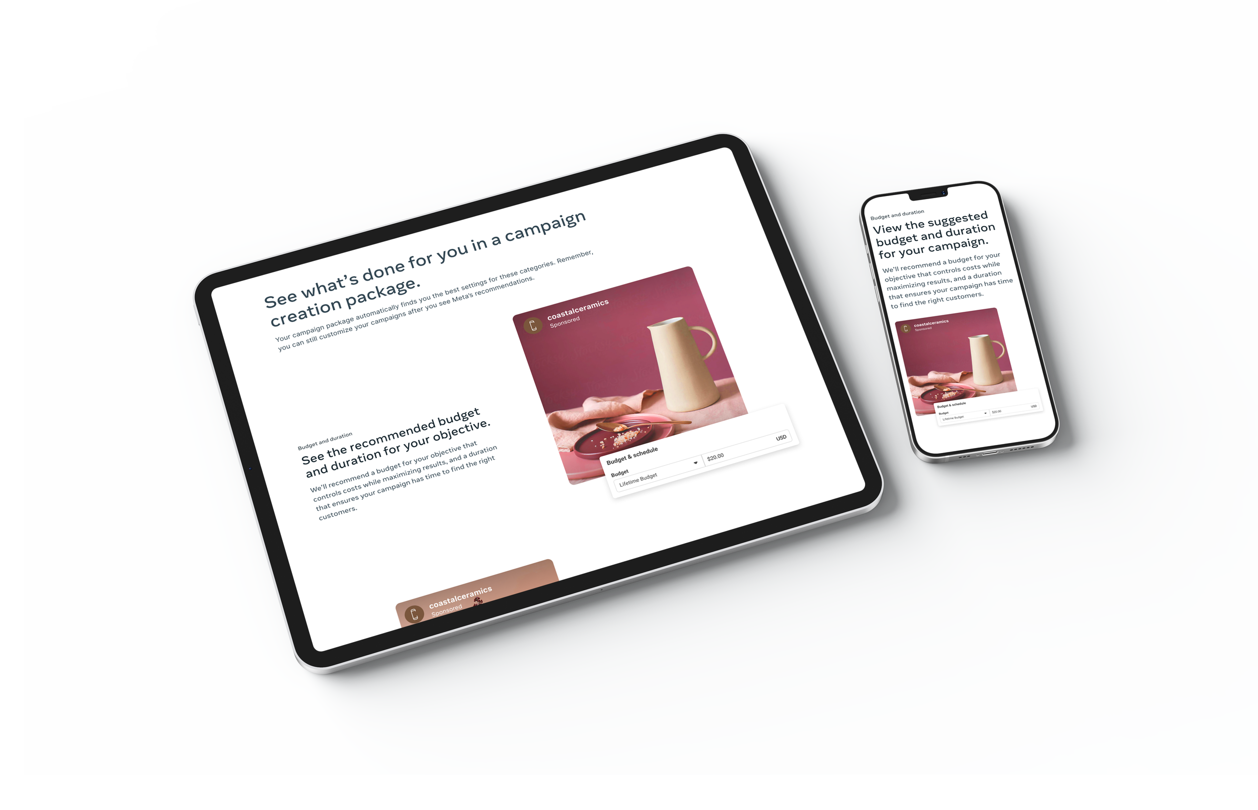 Ads Manager is powerful — and overwhelming for advertisers of all levels. The Meta Advantage Suite was built to drive discovery and adoption of Ads Manager with in-context recommendations on Meta for Business.